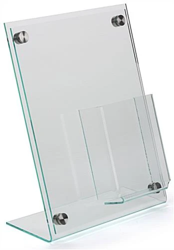 Slanted Sign Holder with Brochure Display & Silver Standoffs